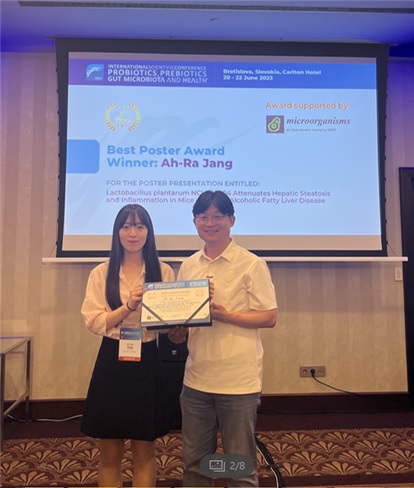 ㈜노드큐어는 슬로바키아의 수도 브라티슬라바에서 개최된 제16회 국제 프로바이오틱스 학술대회에서 비만과 지방간 예방에 탁월한 효능을 갖는 락토바실러스 플란타룸 NCHBL-004 균주에 대한 연구결과가 최우수 포스터상(Best Poster Award)에 선정되었다고 밝혔다.